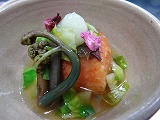 桜の花を 盛り付けに使用するので 料理が華やかになりました。