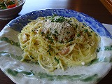 和心紡の 仲間の協力得て 料理作成。画像は ハンバーグ カルボナーラで