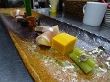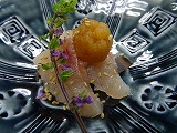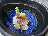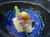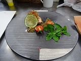 焼き物は 「地鶏のライム焼き 牛蒡ソースを添えて」です。