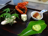 鮎は 骨を取り除き 蓼味噌を詰めて有ります。塩釜焼きを提供するのは 初め