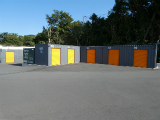 画像の倉庫は コンテナを利用して 見た目をカラーリングでお洒落にみせて