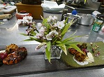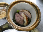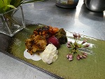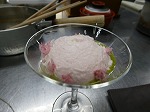 ささみは 温度に気を付けて 昆布湯で湯ぶりをします。田芹は根も使用をしま