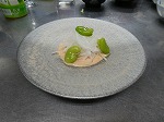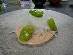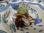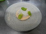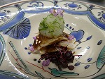 下処理をした両者を 少し変わった 和え衣で和えて 蛇の目ラレシを添えて