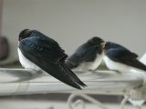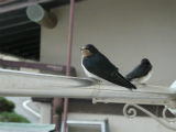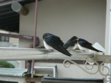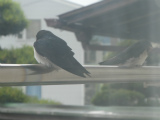 外にある物干し竿を 10羽位のツバメの子供達が 占拠をしています。私が