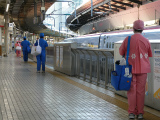いつも 関心をしてみている 新幹線の車内清掃の人達です。