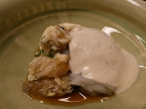 くる形でした。刺身は 烏賊の活作りで その後に 河豚の白子かけが出