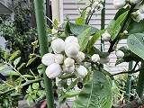 て有る酢橘が 今年は久しぶりに花を沢山咲かせています。秋には 酢