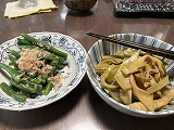 真竹は薄揚げと煮てみました。隠元はただ湯がいて削り節をかけて頂きまし