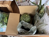 ン・茄子・トマト・ゴーヤ・玉蜀黍と 西瓜が入っていました。西瓜は
