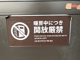張り紙には 「暖房中につき開放厳禁」と書いて有ります。まだ