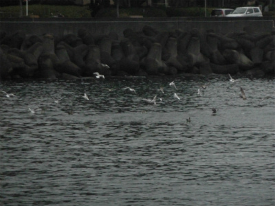 先日 仕事で伊豆へ行った時 朝 散歩していると 港の中で 鳥山を 発見し