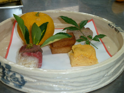 山水様へ行き 正月料理試作と 盛り付け指導を行って来ました。