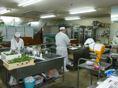 湯ヶ島落合楼村上様へ 伺って来ました。調理場の職人たちが 真剣に料理へ