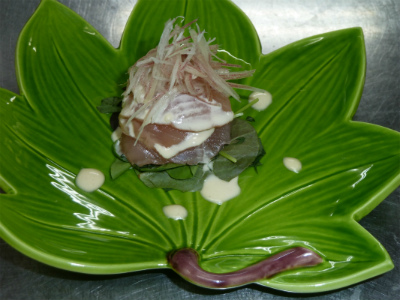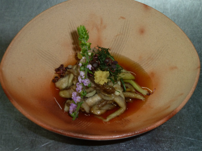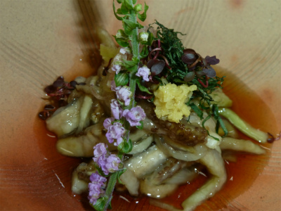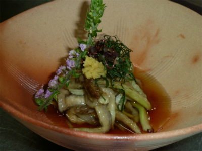 茄子素麺仕立てです。秋茄子を 素麺に見立てました!!