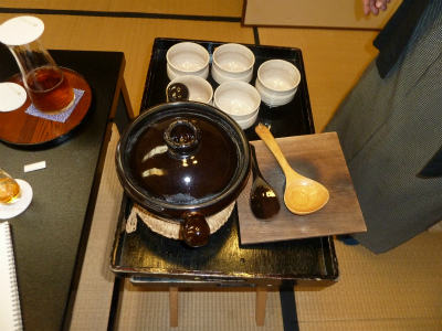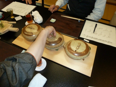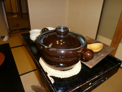 落合楼村上様に 以前からご提案していた 土釜御飯!!お客様の反応が 楽しみ