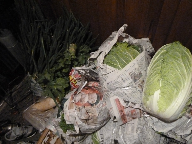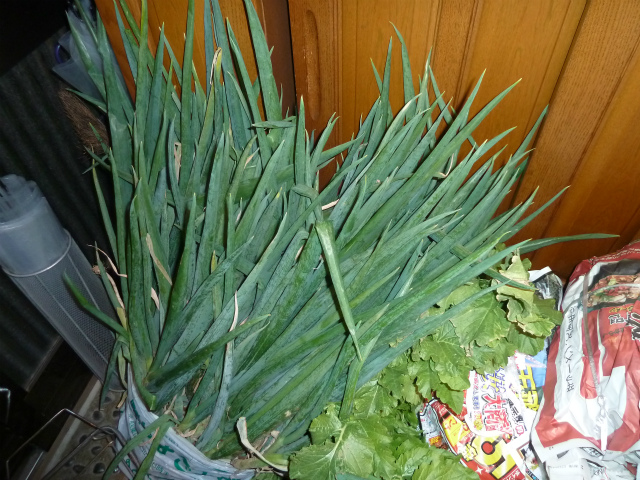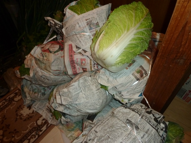千葉の農家から 野菜がどっさり届きました。白菜20個 長葱50本 里芋40個