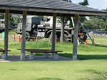 海岸の芝が生えている場所にテントがずらりとを張って有り 退院の皆さんは