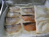 け焼きが良いと 私は思っているので 今回は スズキとサーモンの味噌漬