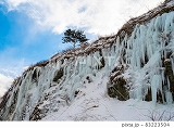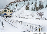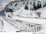 五能線?)の真横に 氷柱が沢山ある場所を見つけました。地域の人