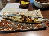 魚の塩焼きを自家製の酢橘を絞って食べ