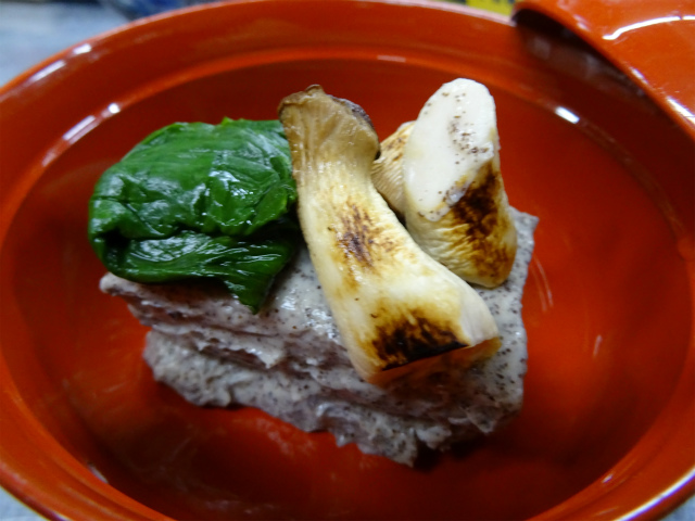 「荏胡麻滝川豆腐 焼きエリンギ 青梗菜」です・荏胡麻のペーストを 豆乳と